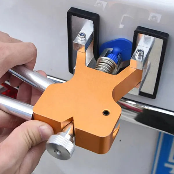 Ovaj magični alat za izvlačenje radi na principu klešta. Sastoji se od dve ručke i dve gumene stopice između kojih se nalazi opruga za podizanje lima, tj. izvlačenje udubina.