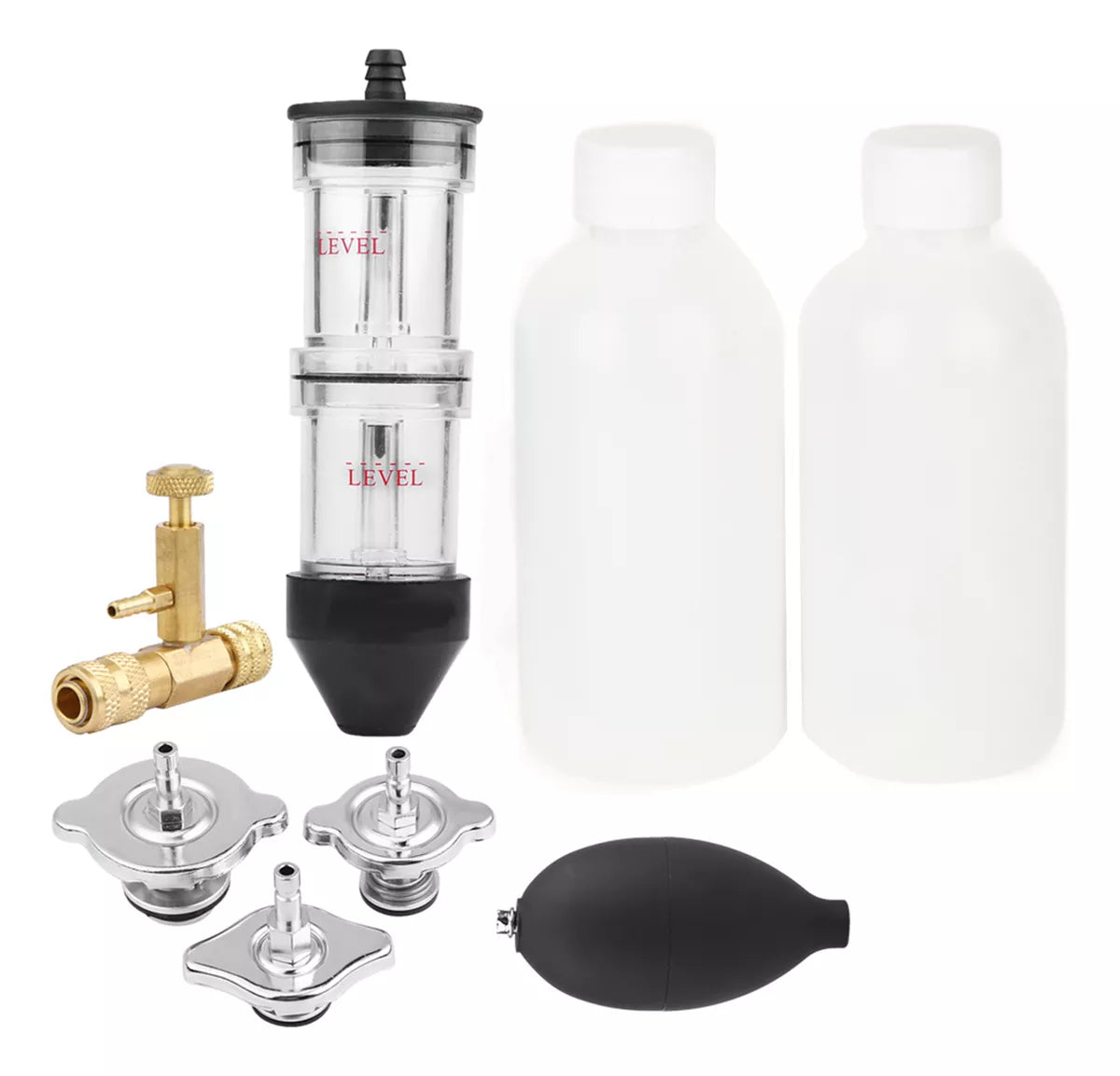 - U slučaju oštećenja zaptivke ispod glave cilindra ili same glave cilindra, deo izduvnih gasova koji sadrži CO2 ulazi u sistem za hlađenje. Princip rada uređaja zasniva se na merenju sadržaja CO2. Sa povećanim sadržajem CO2, tečnost reaguje sa gasom i menja boju. Ceo proces traje samo 5 minuta. Tester nudi skoro 100% sigurnost.