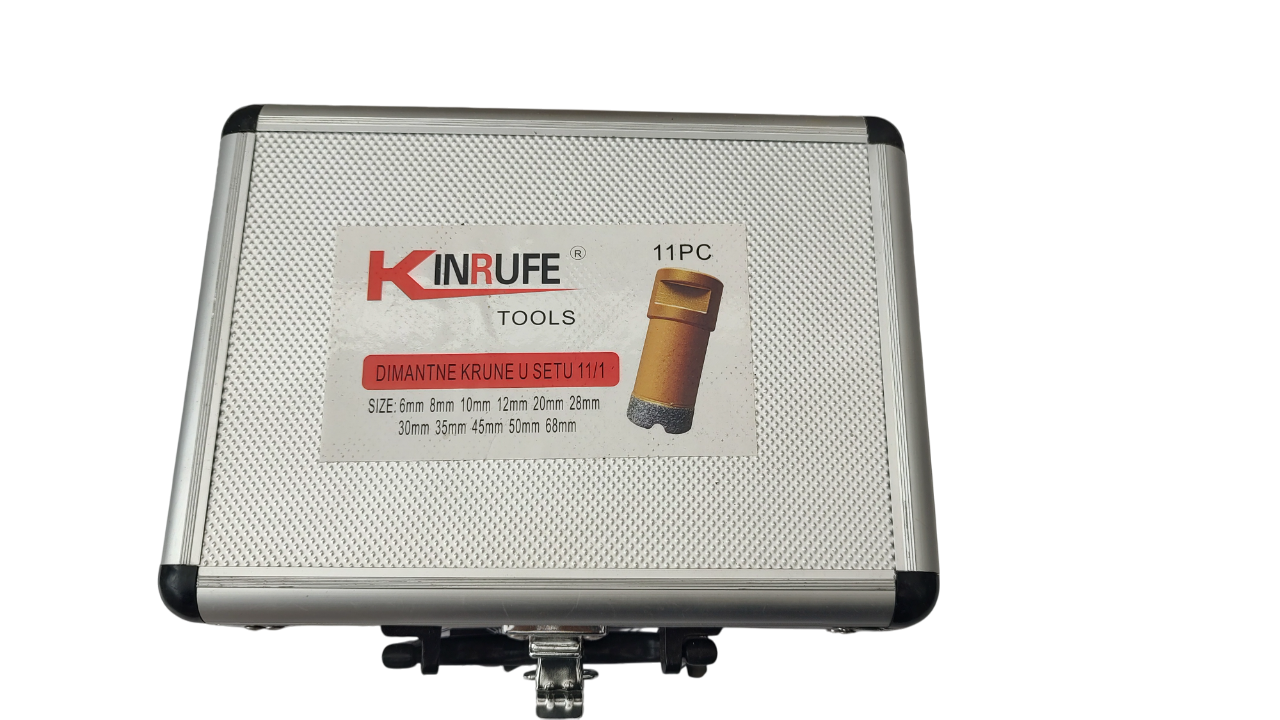 Kvalitetne dijamantske krunice za precizno bušenje keramike, granita i porcelana. Dolaze u čvrstom koferu — izdržljive i dugotrajne.