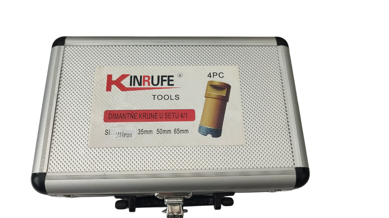 Kvalitetne dijamantske krunice za precizno bušenje keramike, granita i porcelana. Dolaze u čvrstom koferu — izdržljive i dugotrajne.
