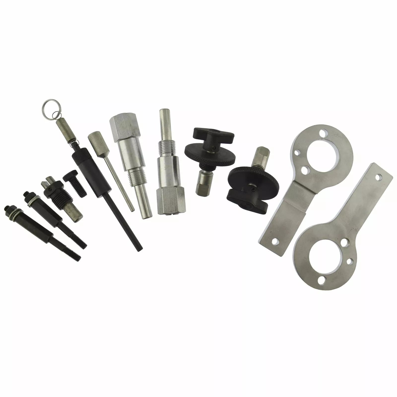 Profesionalni komplet alata za preciznu blokadu i zupčenje dizel motora 1.3 / 1.9 CDTi, JTD, Multijet i DDiS. Omogućava sigurno zaključavanje radilice, bregaste osovine i remenice, što garantuje pravilno podešavanje razvodnog sistema i bezbednu zamenu zupčastog kaiša.