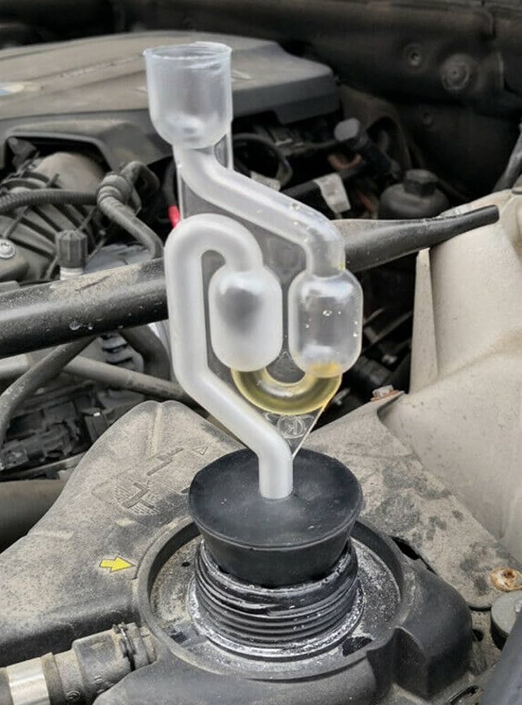 Ukoliko tečnost promeni boju (plava → žuta/zelena), to je jasan znak da gasovi iz cilindra ulaze u rashladni sistem.